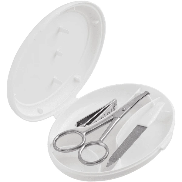 - Das Maniküre-Set besteht aus Nagelschere mit abgerundeten Spitzen,